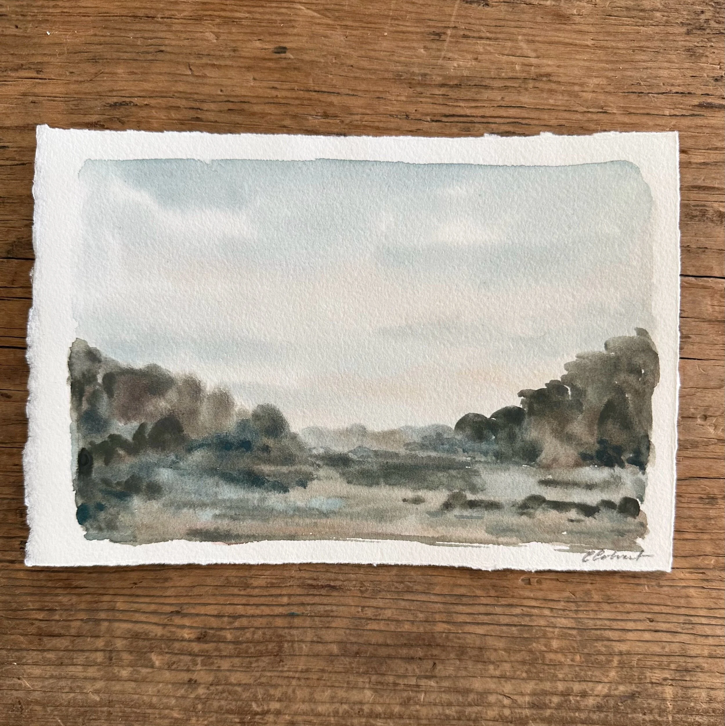 Original watercolor on archival paper with a deckled edge. It would pair well with “A Nod to the Past”.